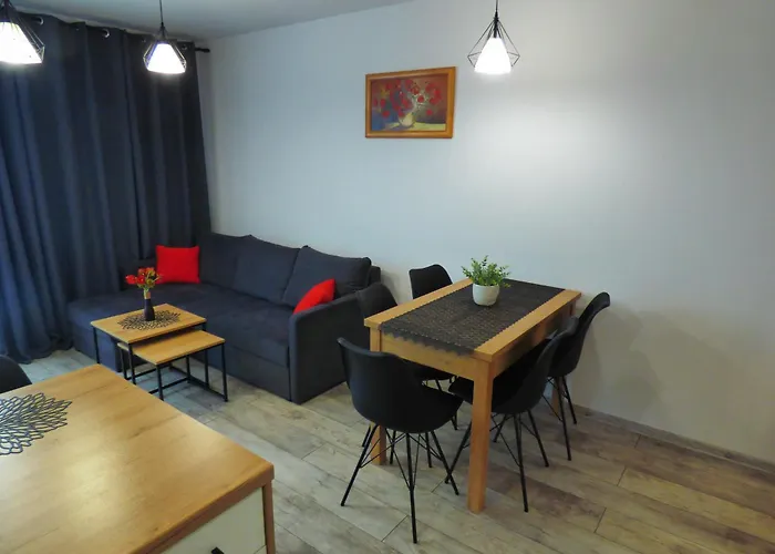 Dieses Apartment bietet seinen Gästen die Annehmlichkeiten von Selbstversorgern, wie eine Küchenzeile und einen Essbereich. Der Flughafen Breslau-Nikolaus Kopernikus liegt nur etwa 35 km vom Apartment entfernt.